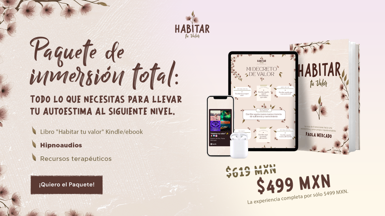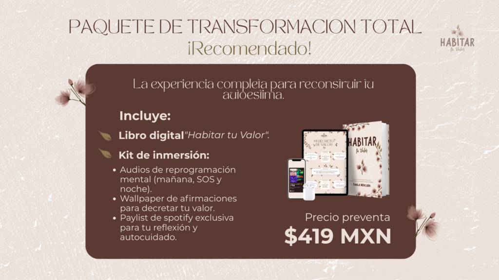 Si quieres llevar tu autoestima al siguiente nivel, el paquete "Habitar tu valor" es ideal para ti.